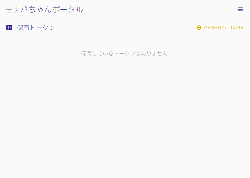 再びモナパちゃんポータルの保有トークンページを開くと今度は右上にTwitterアカウント名が表示され、保有トークンの状況も表示されています。