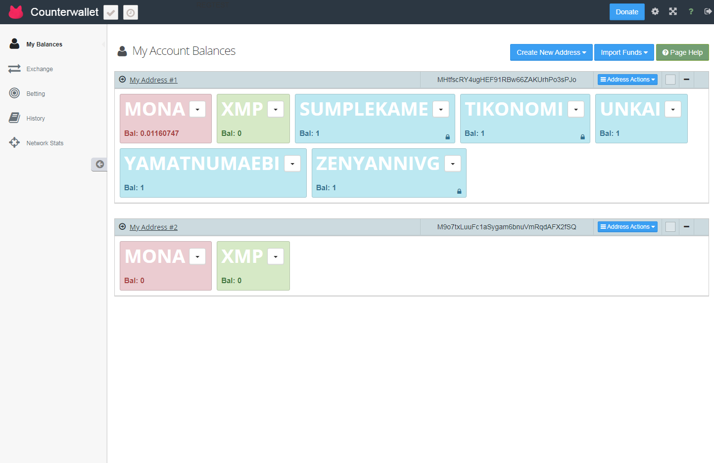 Counterwallet-monaとは、Monaparty(XMP)の公式ウォレットであり、所持しているモナコイン、XMP、Monapartyトークンを管理出来るアプリケーションです。